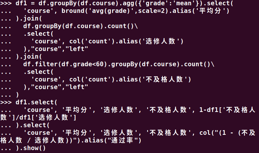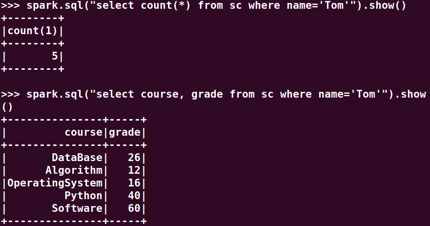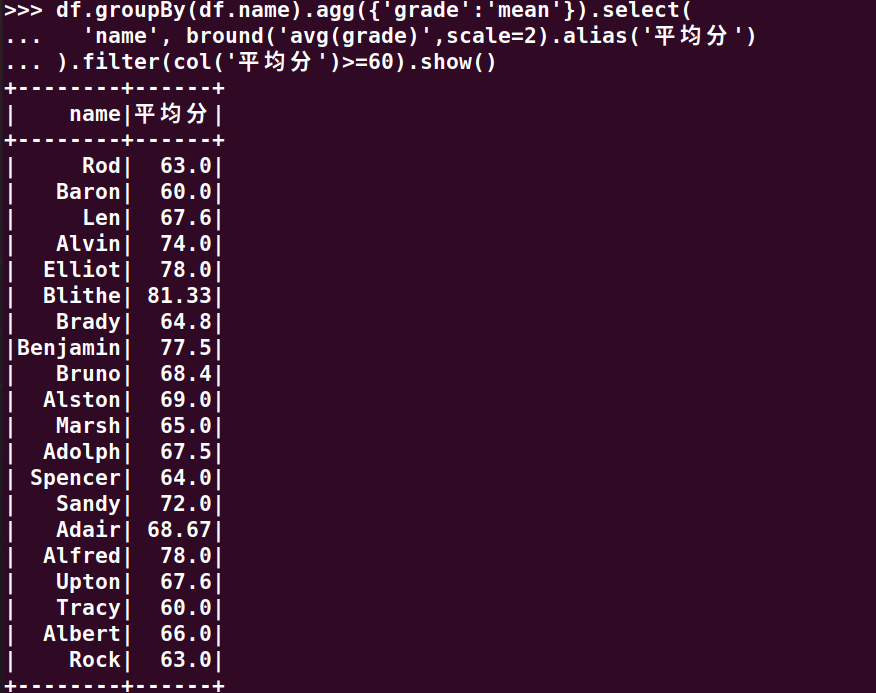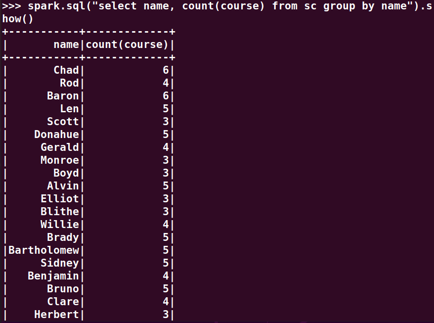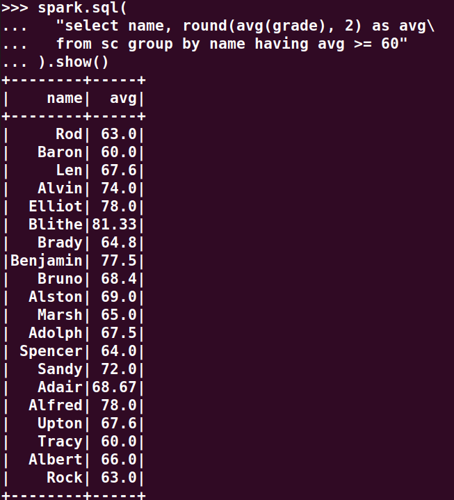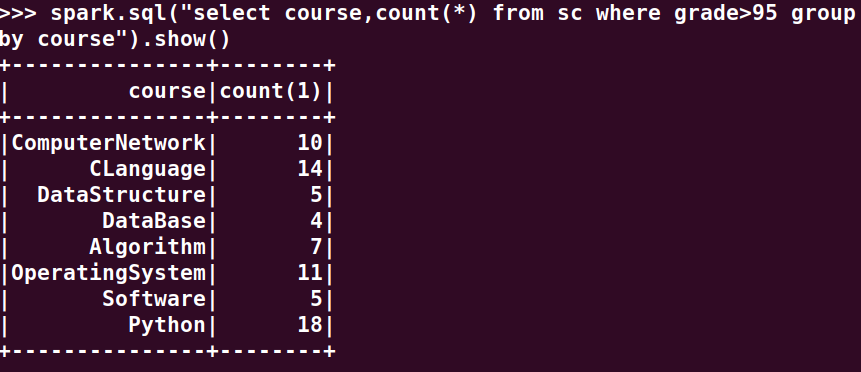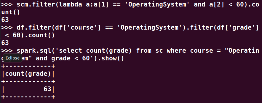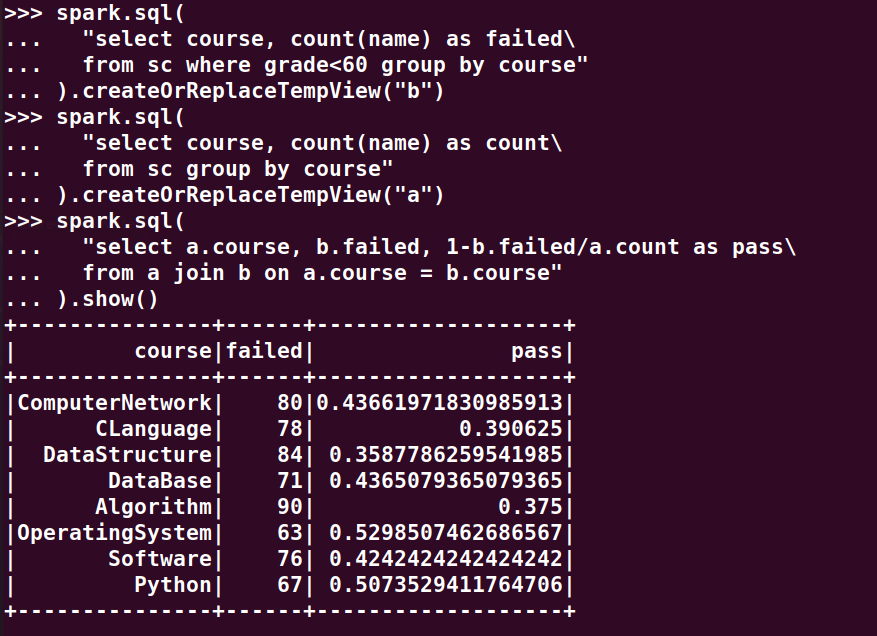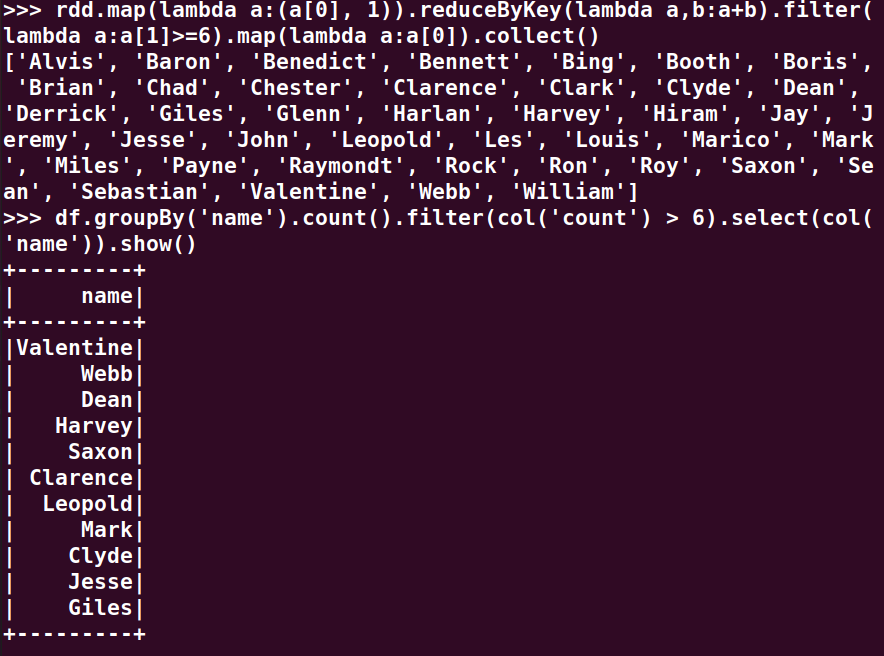 分别用RDD操作、DataFrame操作和spark.sql执行SQL语句实现以下数据分析: