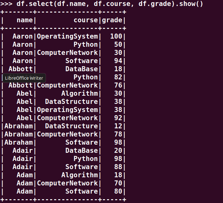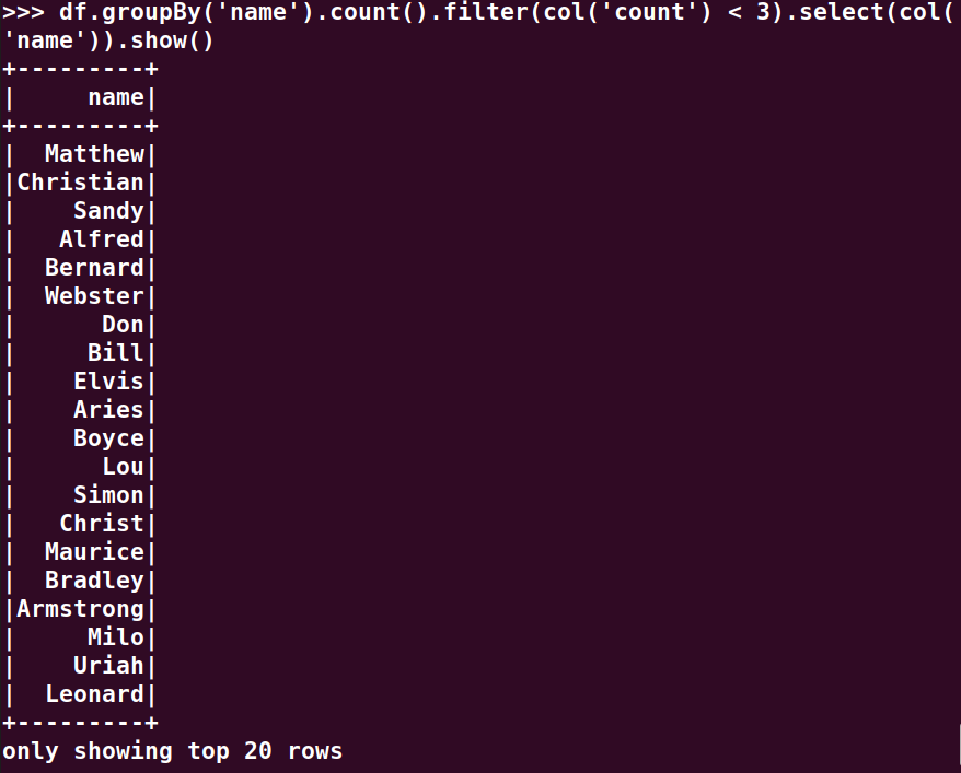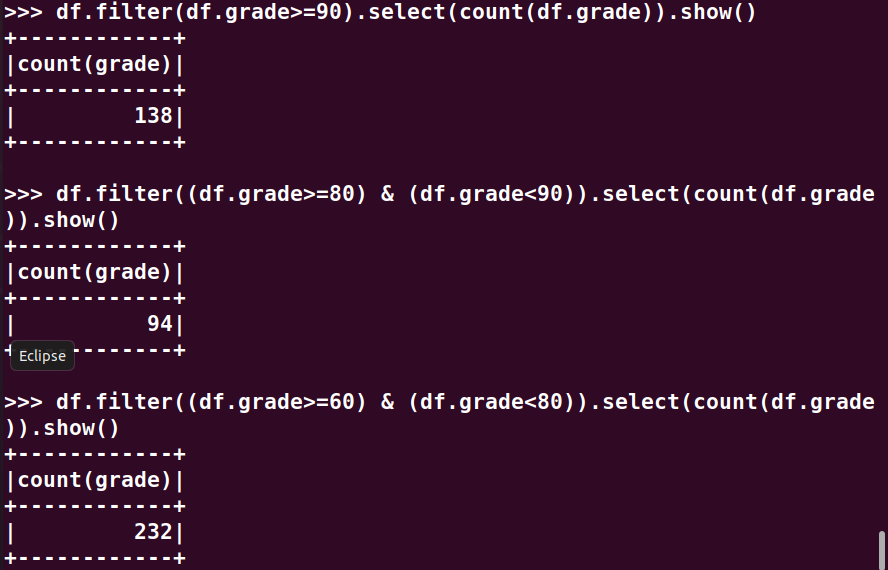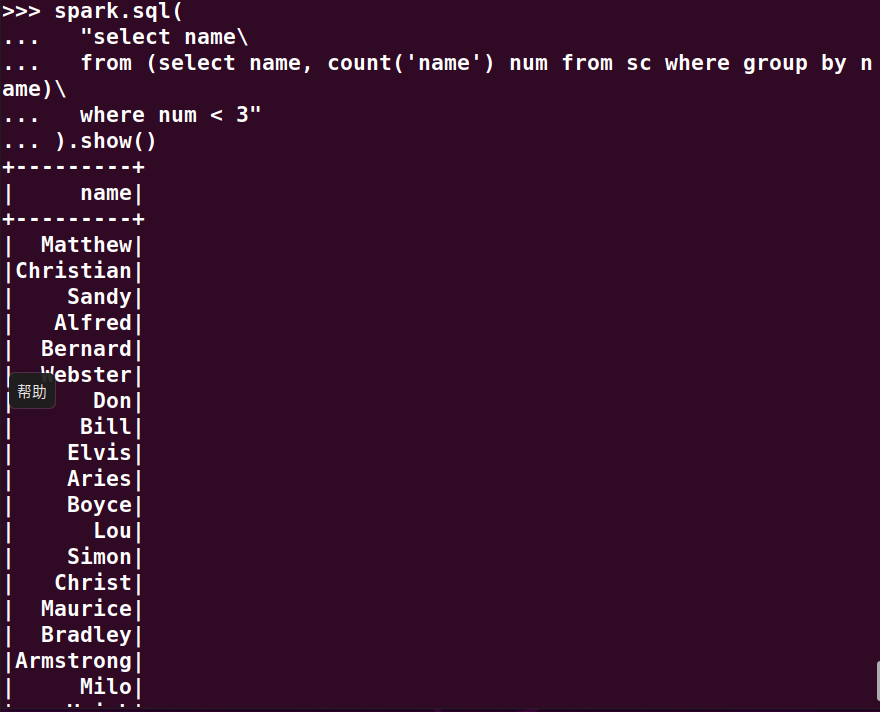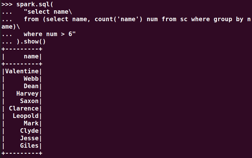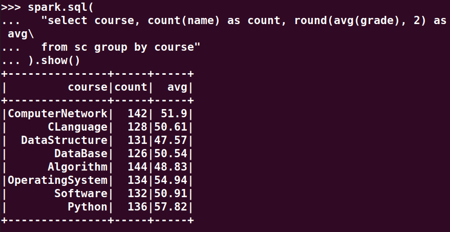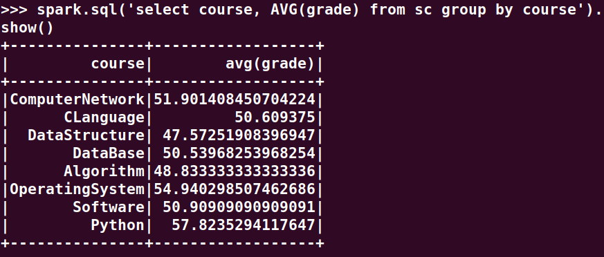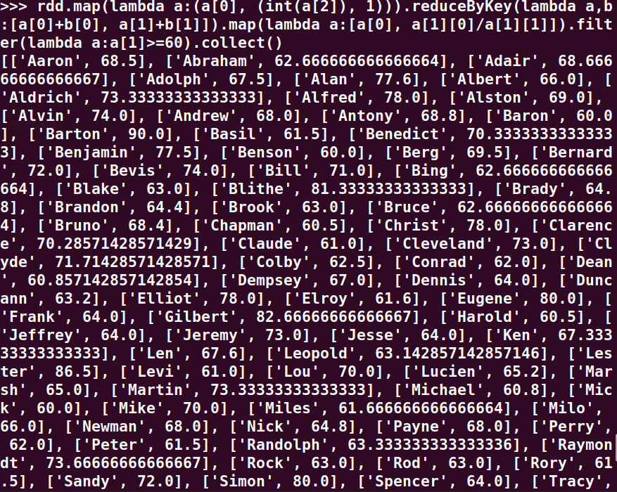 分别用RDD操作、DataFrame操作和spark.sql执行SQL语句实现以下数据分析: