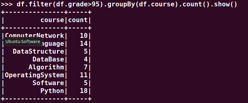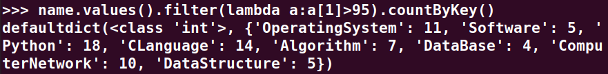 6.课程'Python'有多少个100分?