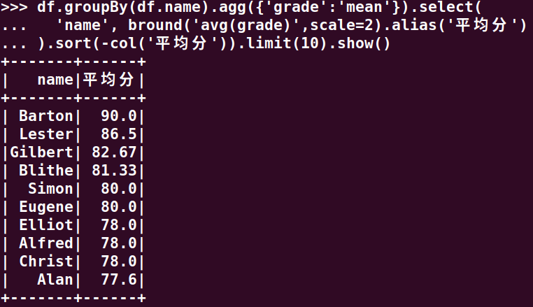 26.找出平均分最高的10位同学
