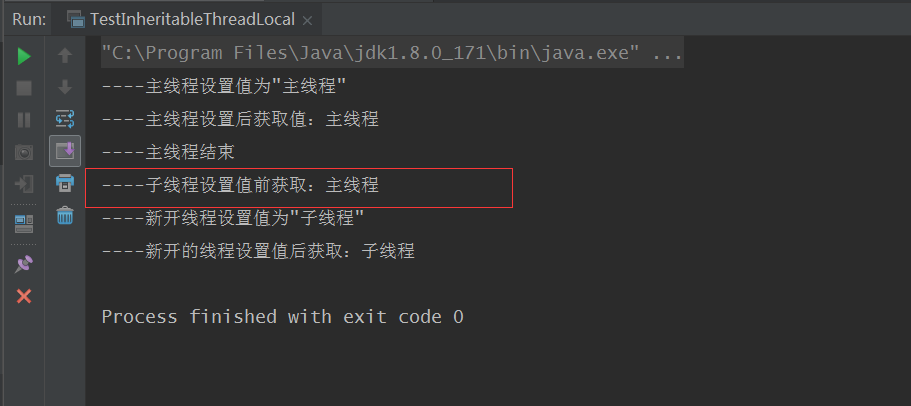 System.out.println("----主线程设置后获取值:" + inheritableThreadLocal.get());