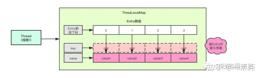 含有多个ThreadLocal-value的Entry,虽然ThreadLocal-key是弱引用可以被垃圾回收器自动回收,但是ThreadLocal对应的value是不能被回收的,