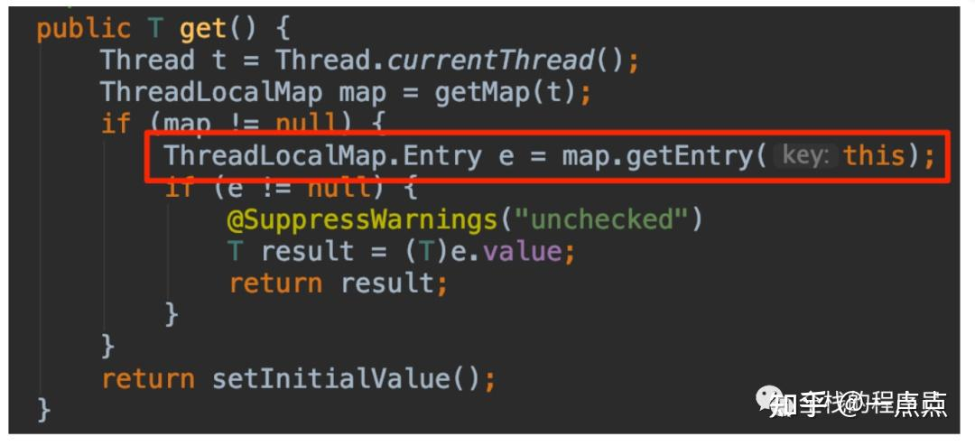 上述图8,同学们应该还有印象吧,它就是我们之前讲解的ThreadLocal的get方法,先是在红线1处就是获取ThreadLocal对应的Entry,然后再从Entry