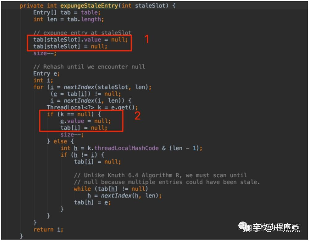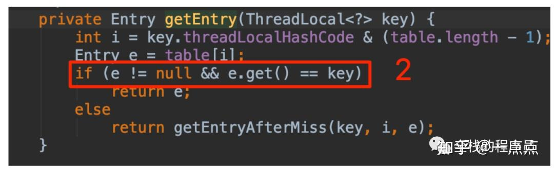 获取对应value,那么在红线2处,我们能看到这个if条件,同学们,如果Entry所对应的ThreadLocal被自动回收变成null啦,那这个if判断条件是不成立的,