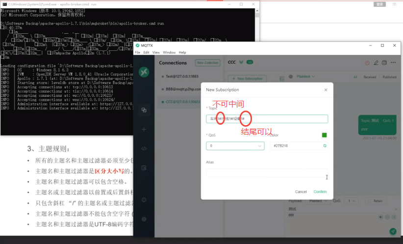 1、#:代表当前节点往后的所有节点,包括子节点,a/b/c/#,上面所有节点都可以支持