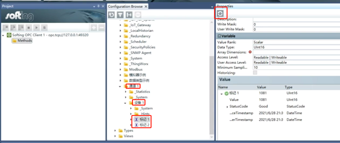 UA连接服务器,需要使用客户端连接软件Softing OPC Client