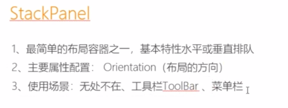 对比:StackPanel是自上而下垂直排列,最后一个也不会占满剩余空间