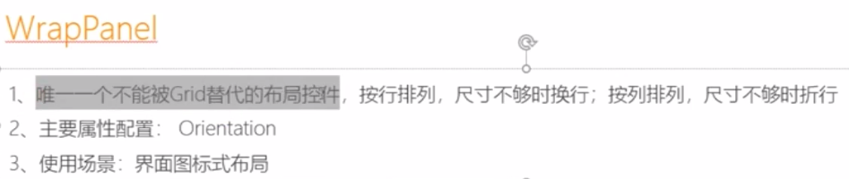默认靠左对齐,类似StackPanel,只不过最后一个对象会填满剩余空间