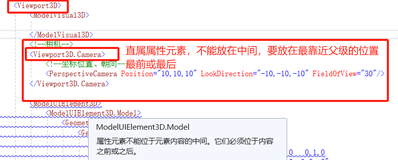 Viewport3D.Camera是Viewport3D的属性元素,必须放在最前面,不能放在中间