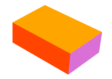 <Window x:Class="WpfLayoutControl.Cube3D" xmlns="http://schemas.microsoft.com/winfx/2006/xaml/presentation" xmlns:x="http://schemas.microsoft.com/winfx/2006/xaml" xmlns:d="http://schemas.microsoft.com/expression/blend/2008" xmlns:mc="http://schemas.openxmlformats.org/markup-compatibility/2006" xmlns:local="clr-namespace:WpfLayoutControl" mc:Ignorable="d" Title="3D长方体" Height="600" Width="800"> <Grid> <Viewport3D> <!--相机--> <Viewport3D.Camera> <!--坐标位置、朝向--> <PerspectiveCamera Position="10,10,10" LookDirection="-10,-10,-10" FieldOfView="30"/> </Viewport3D.Camera> <!--光源:环境光,白色--> <ModelVisual3D> <ModelVisual3D.Content> <AmbientLight Color="White"/> </ModelVisual3D.Content> </ModelVisual3D> <ModelUIElement3D> <ModelUIElement3D.Model> <GeometryModel3D> <GeometryModel3D.Geometry> <!--模型--> <MeshGeometry3D Positions="0,0,0 3,0,0 3,1,0 0,1,0 3,0,-2 3,1,-2 0,1,-2 0,0,-2" TriangleIndices="0,1,3 3,1,2"/> </GeometryModel3D.Geometry> <!--材质--> <GeometryModel3D.Material> <DiffuseMaterial Brush="OrangeRed"/> </GeometryModel3D.Material> </GeometryModel3D> </ModelUIElement3D.Model> </ModelUIElement3D> <ModelUIElement3D> <ModelUIElement3D.Model> <GeometryModel3D> <GeometryModel3D.Geometry> <!--模型--> <MeshGeometry3D Positions="0,0,0 3,0,0 3,1,0 0,1,0 3,0,-2 3,1,-2 0,1,-2 0,0,-2" TriangleIndices="3,2,6 6,2,5 1,4,2 2,4,5 "/> </GeometryModel3D.Geometry> <!--材质--> <GeometryModel3D.Material> <DiffuseMaterial Brush="Orange"/> </GeometryModel3D.Material> </GeometryModel3D> </ModelUIElement3D.Model> </ModelUIElement3D> <ModelUIElement3D> <ModelUIElement3D.Model> <GeometryModel3D> <GeometryModel3D.Geometry> <!--模型--> <MeshGeometry3D Positions="0,0,0 3,0,0 3,1,0 0,1,0 3,0,-2 3,1,-2 0,1,-2 0,0,-2" TriangleIndices="1,4,2 2,4,5 "/> </GeometryModel3D.Geometry> <!--材质--> <GeometryModel3D.Material> <DiffuseMaterial Brush="Orchid"/> </GeometryModel3D.Material> </GeometryModel3D> </ModelUIElement3D.Model> </ModelUIElement3D> </Viewport3D> </Grid> </Window>