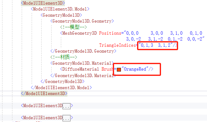 MeshGemetry3D:网格3D几何图形,每个顶点通过属性Positions点来添加,建立三角形列域Traianglelndices,