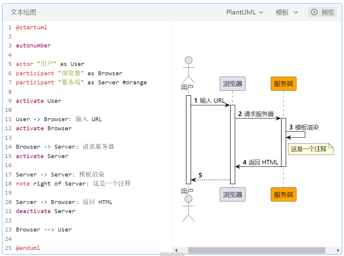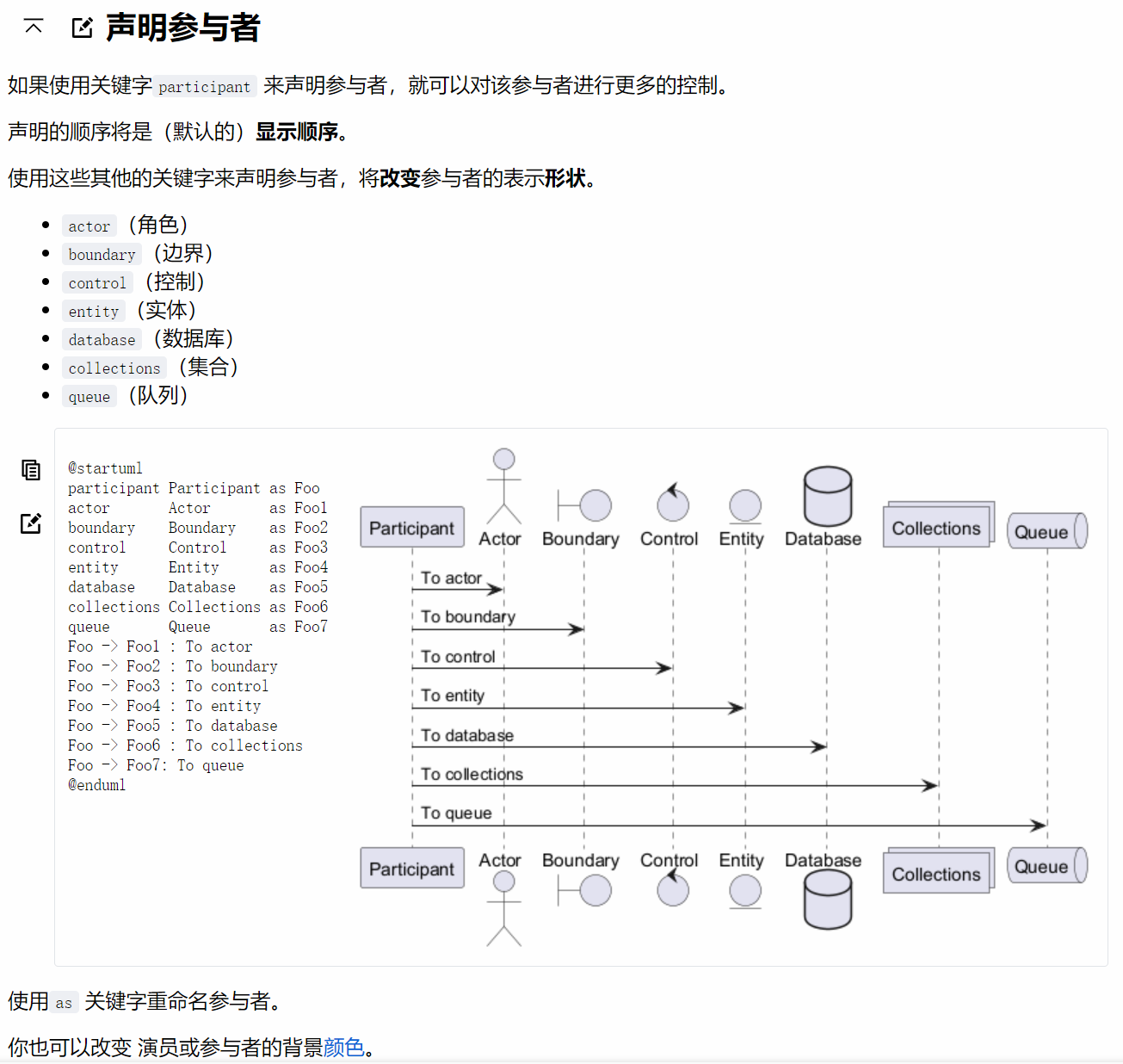 各种参与者形状具体可参考plantuml官网:https://plantuml.com/zh/sequence-diagram