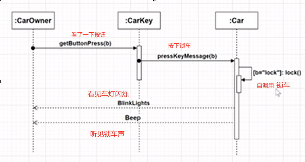 4、消息:连接线,对消息进行描述交互内容,可以自调用
