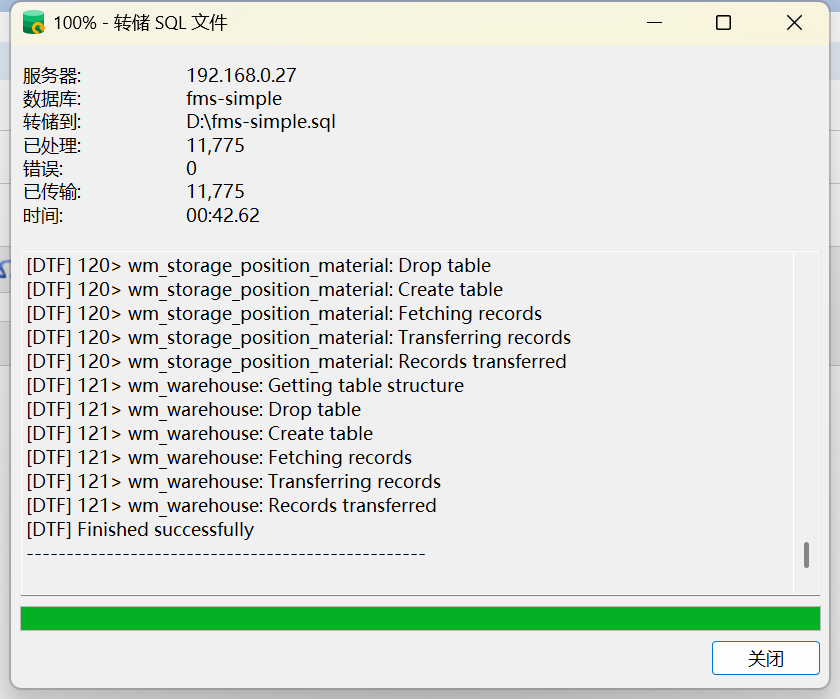 cmd打开命令窗口,执行命令:mysqldump -u root -p fms-simple > D:fms-simple.sql