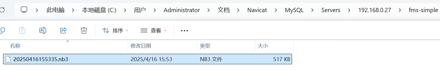 存储默认位置:C:\Users\Administrator\Documents\Navicat\MySQL\Servers\192.168.0.27\fms-simple