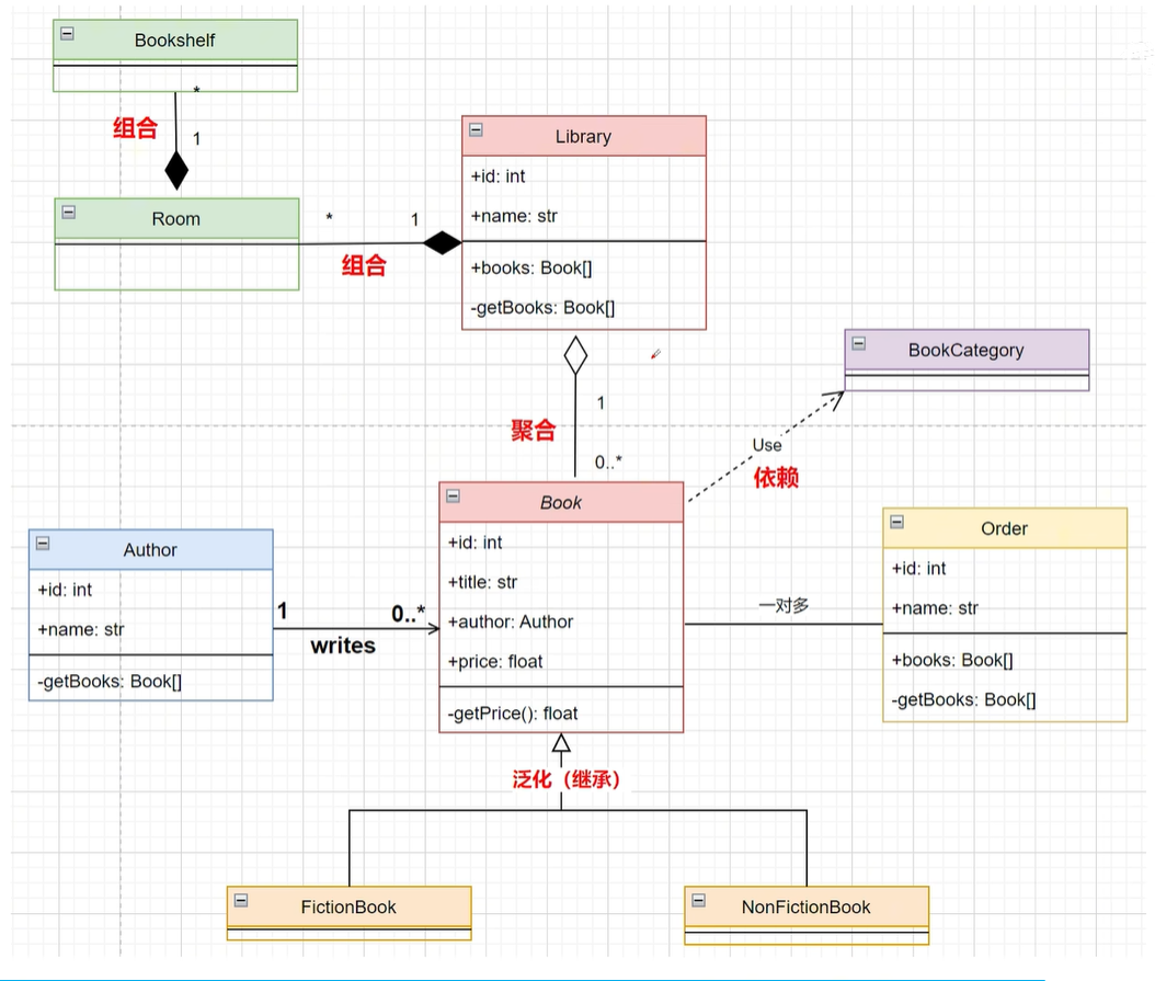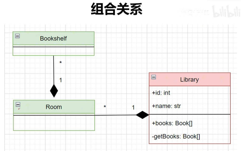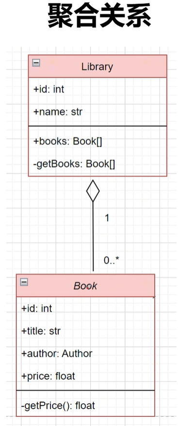 UML中,用一条线连接,整体一端用空心菱形表示,一个图书馆可以包含0个或多个书籍类