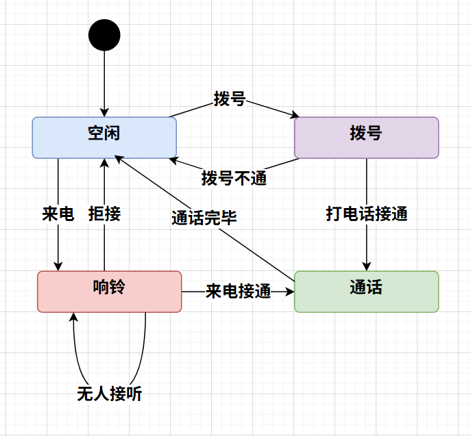 箭头表示从一个状态转换成另一个状态