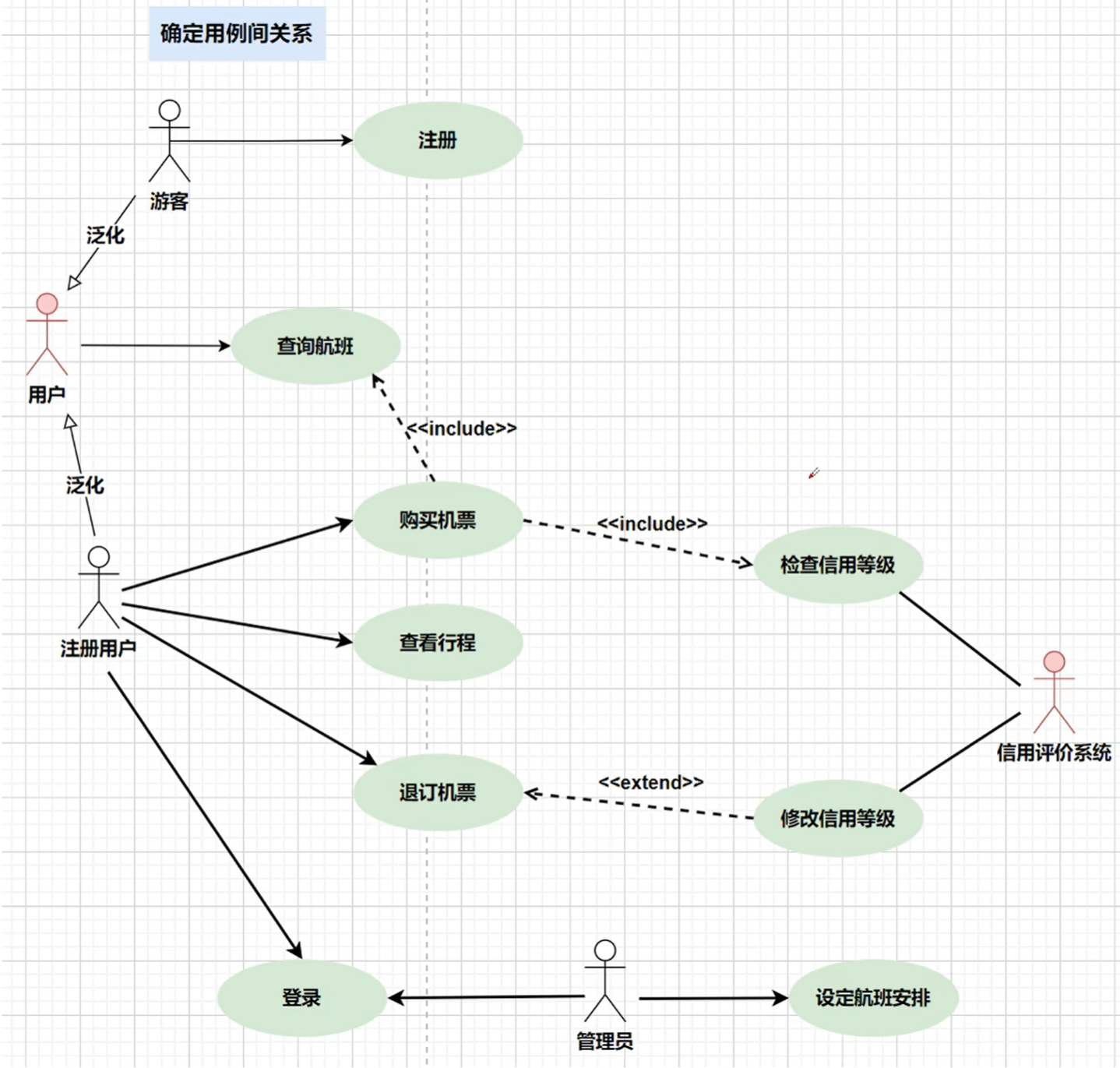 确保用例图清晰的展示了功能视图,同时反应了参与者之间与系统功能之间的互动逻辑