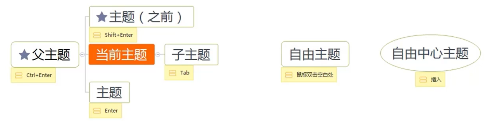 1、Ctrl+Enter:是把当前主题往后挪一个层级,在前面添加一个主题 ,也就是当前位置变成了新主题
