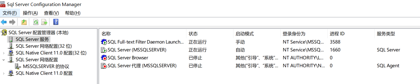 在“SQL Server 网络配置”下,查看你的 SQL Server 实例(例如 SQL Server Network Configuration -> Protocols for MSSQLSERVER)。