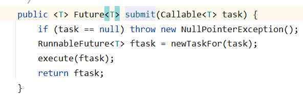 我们首先创建一个线程池,使用查看submit提交任务的方法,在这里我们以参数为提交callable为例,,线程池的submit方法的实现在AbstractExecutorService中实现,在submit方法中主要做了一下几件事情