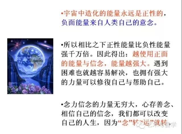 实际上,整个生命的过程就是能量的获取与释放的过程。除了从饮食中获取能量之外,其实很多人不知道我们还需要从虚空中获取能量、这个能量的获取其实说起来也很简单,就是虚、静二字而已。虚极、静笃是道家修炼的最高层次。在这个状态下,天地的能量可以随时为我所得。首先你要静下来,静下来,代表你开始减少能量的消耗,而虚,才能开始从太空宇宙中吸收能量。而能吸收到什么样的能量,则取决于你的内心,你有什么样的内心,你就会感召到什么样的能量。这就是同气相求、物以类聚的道路。