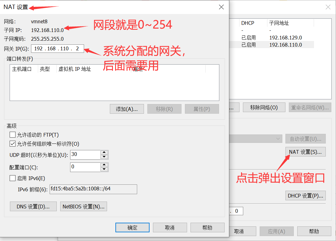 4.点击NAT设置查看分配的网关