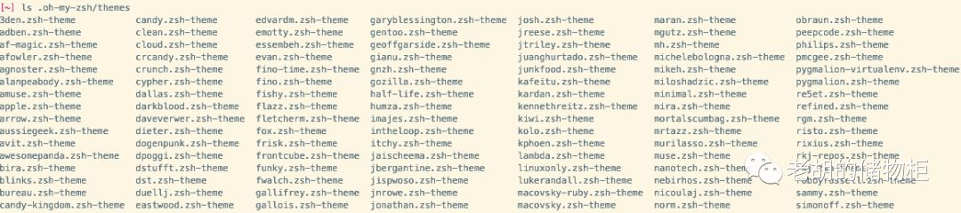 oh-my-zsh的主题非常丰富,可以用如下命令查看已有主题:
