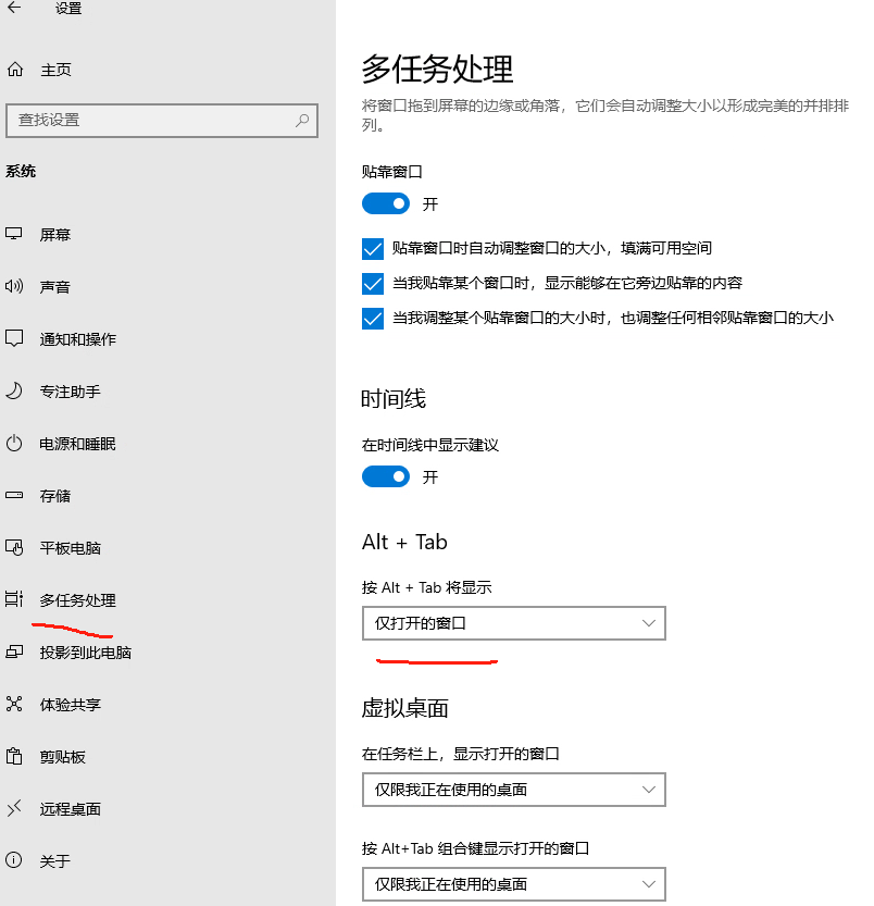 最近刚转手使用Edge浏览器的时候发现不能用alt+tab切换别的应用上,在浏览器设置上找了半天还是没有,最后离谱的在系统设置里面多任务窗口找到了这个设置。