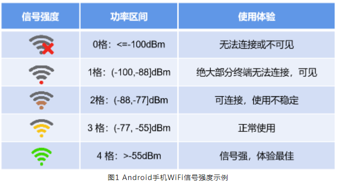 以Android手机为例,信号≤2格,即信号强度低于-77dBm时,连接会变得不稳定(不同手机灵敏度不同),严重影响用户体验。