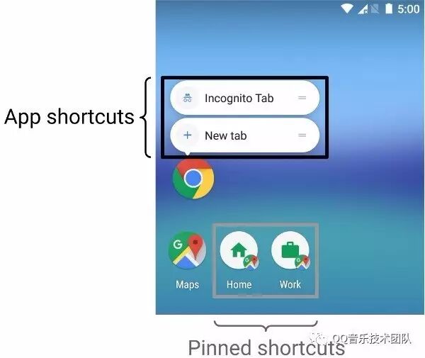 这个功能在 7.1.1 之后就已经有了,长摁桌面图标就会显示一个 App shortcuts 菜单栏,然后长摁菜单栏上的一项,就能把它拖下来成为单独的一个应用图标,被拖下来的单独的应用图标就是Pinned shortcuts,虽然这个功能在 7.1.1 引入的,但是在 O 版本我们可以通过提供的 API 按照一定的步骤去使用代码添加:Pinning Shortcuts and Widgets(https://developer.android.com/preview/features/pinning-shortcuts-widgets.html#shortcuts)。