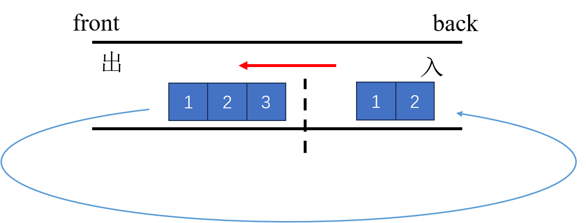 当stackOut为空的时候,需要一次性从stackIn中弹出所有的元素,并进入stackOut。因为stackOut不为空的话顺序就不一样了。