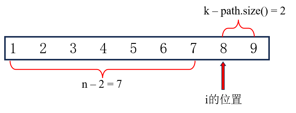 因为剩余算出来的n - (k - path.size())是还剩下的元素,是一个个数,要想让i指向那里,必须让i+1