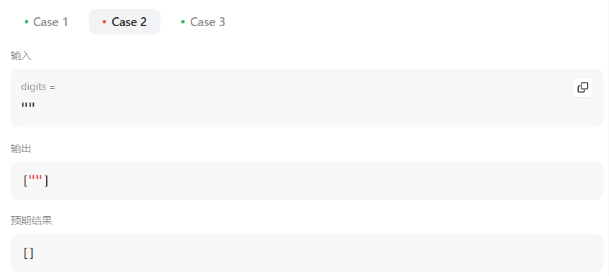 在测试的时候出现了这种情况,就是因为index初始为0,而又因为digits.size()=0,相当于会添加一个空的path,也就是下图的两个双引号,我看了一下k哥给的是在主函数直接加了一个判断
