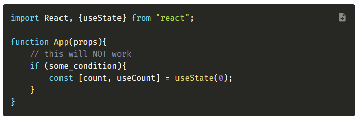 - 只在顶层调用hooks,并且不要在循环,条件判断或嵌套函数中调用hooks