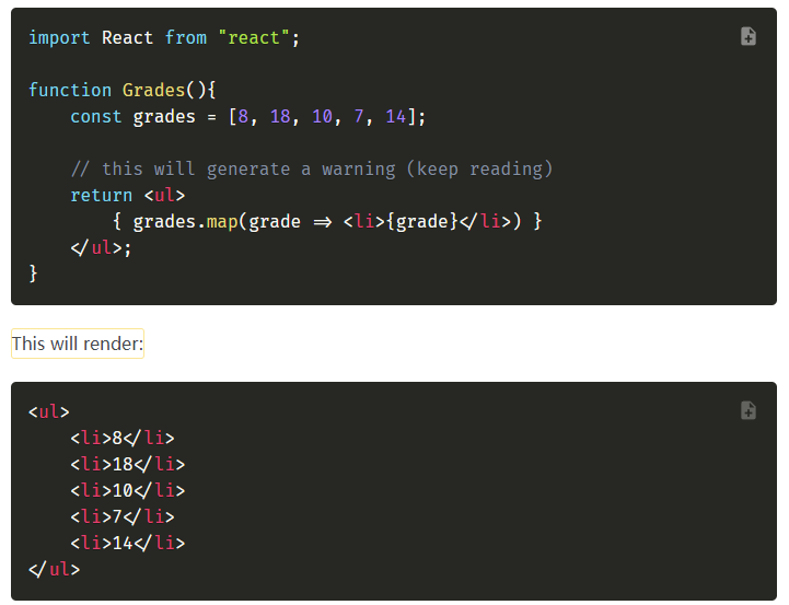 在JSX中可以使用数组循环返回组件或元素,类似于vue中的v-for