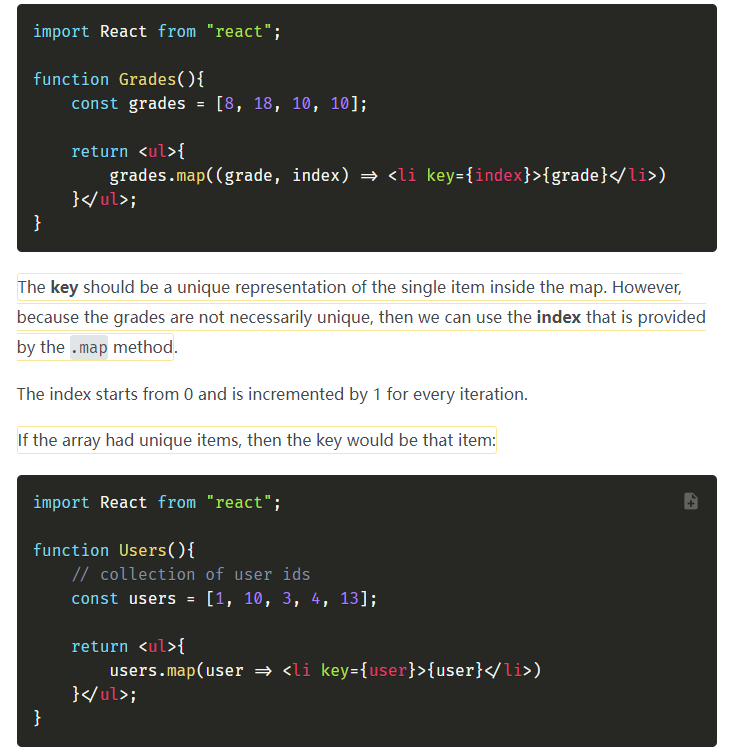 每次使用map循环需要给每个元素添加key值,和vue类似,这可以提升性能