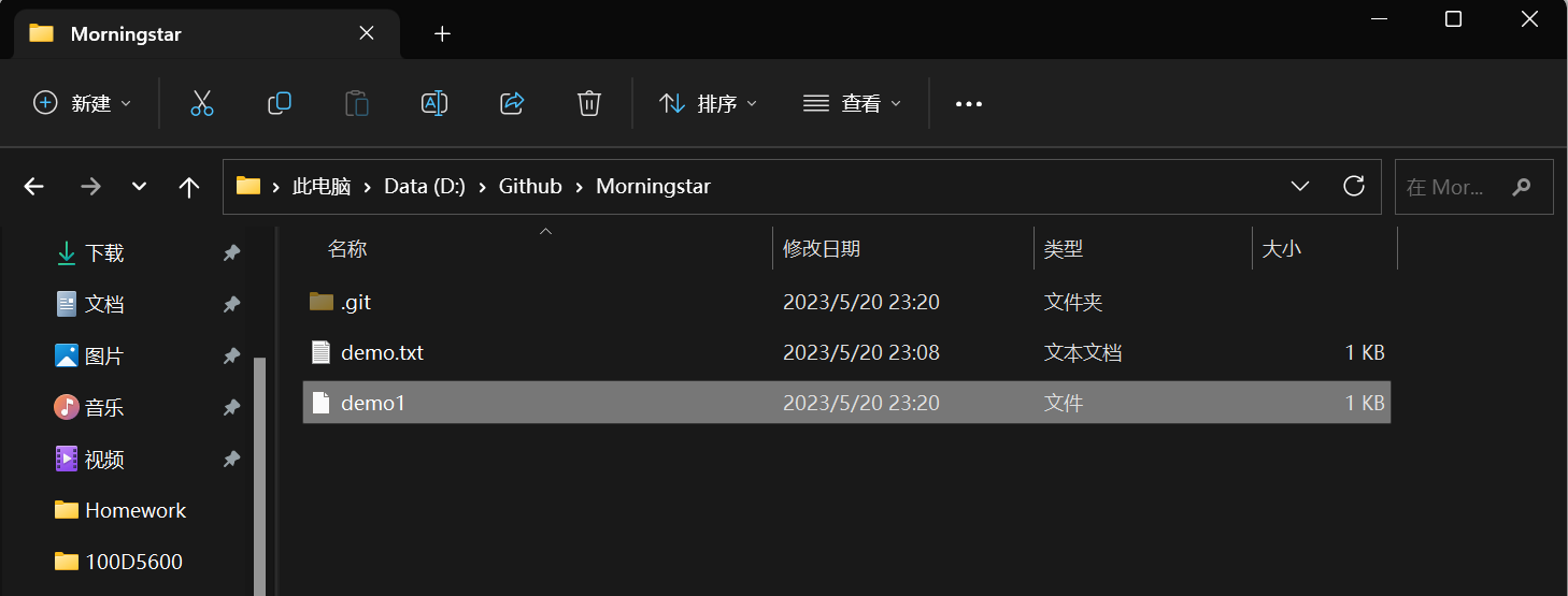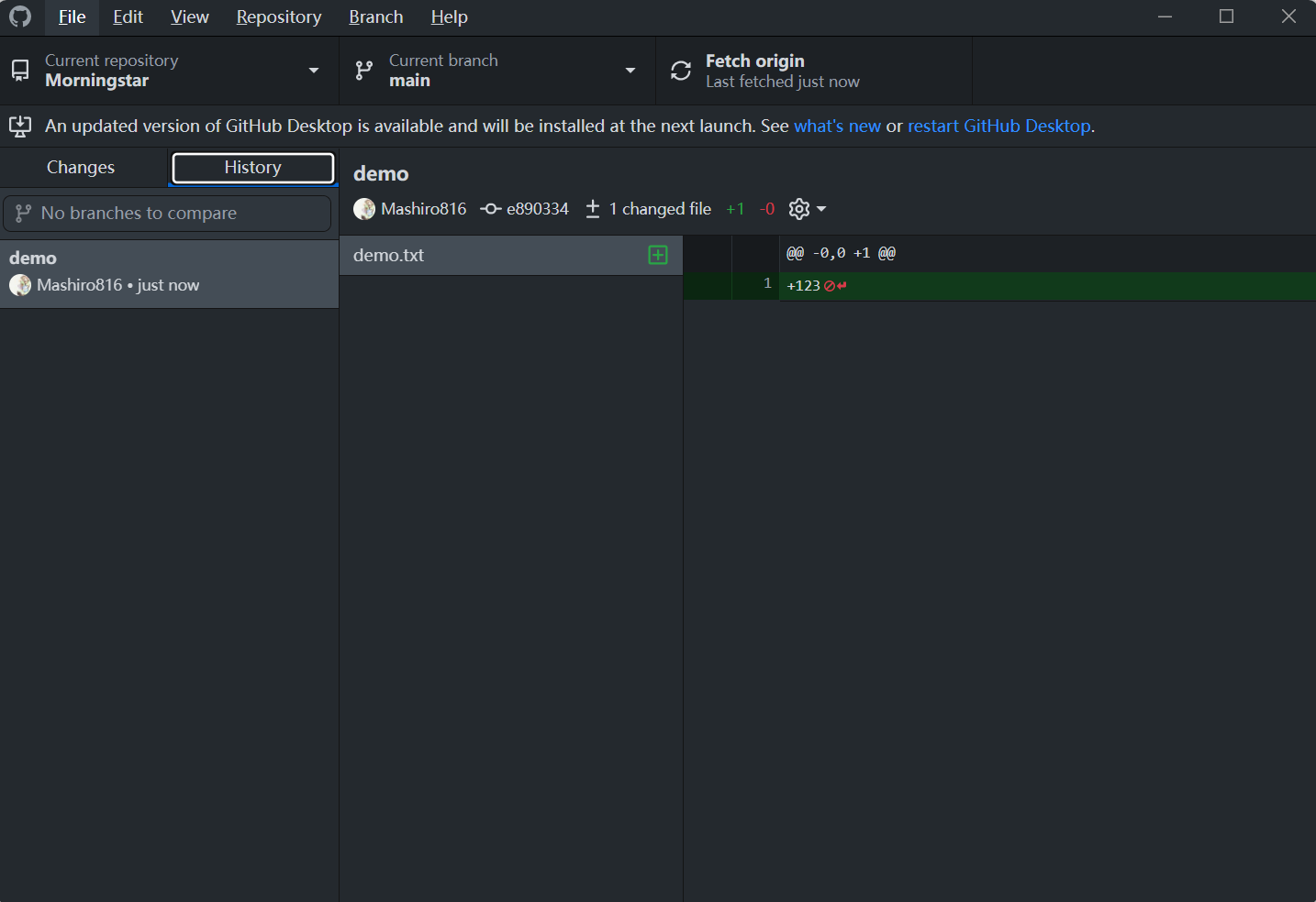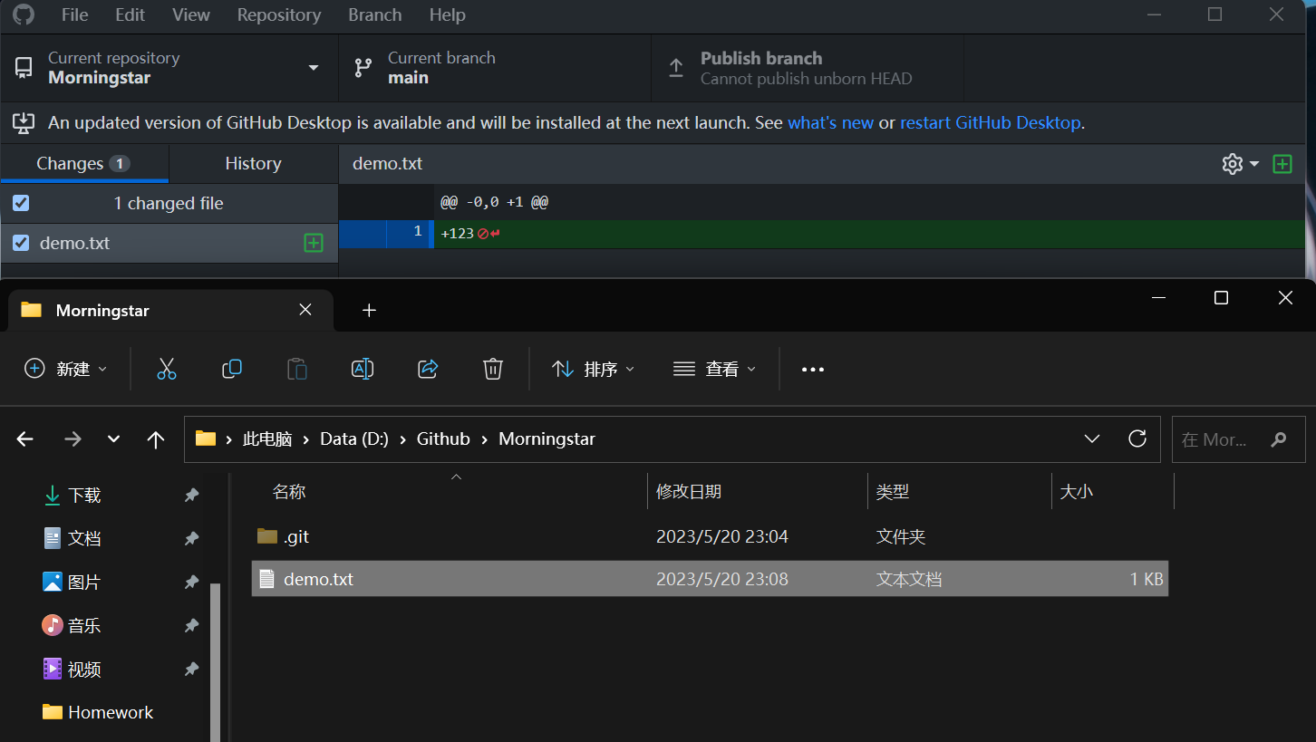 在文件夹内创建一个demo.txt文件,在Github Desktop中也可同步显示: