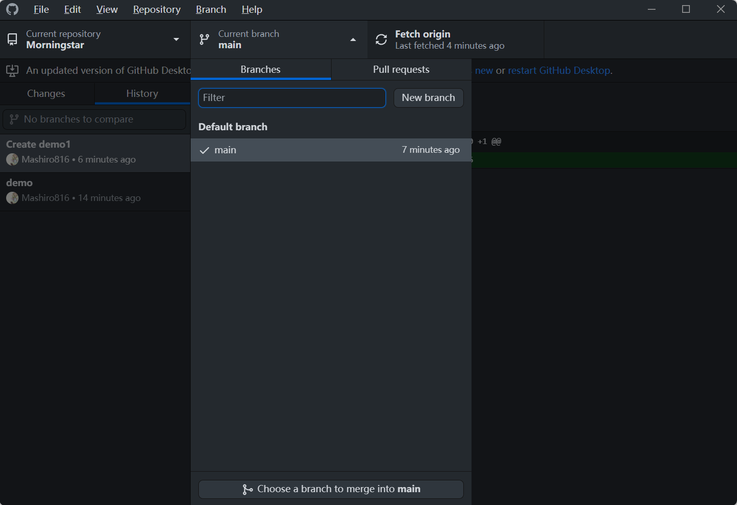 在Github Desktop中还有新增分支功能(New Branch),创建新分支后再点一下Push功能就可以把新分支上传到Github中: