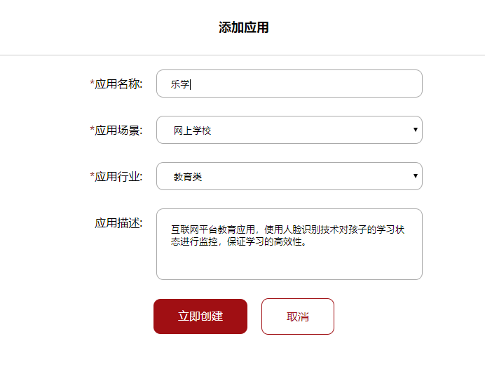 应用名称: 必填项,用于标识您所创建的应用的名称;