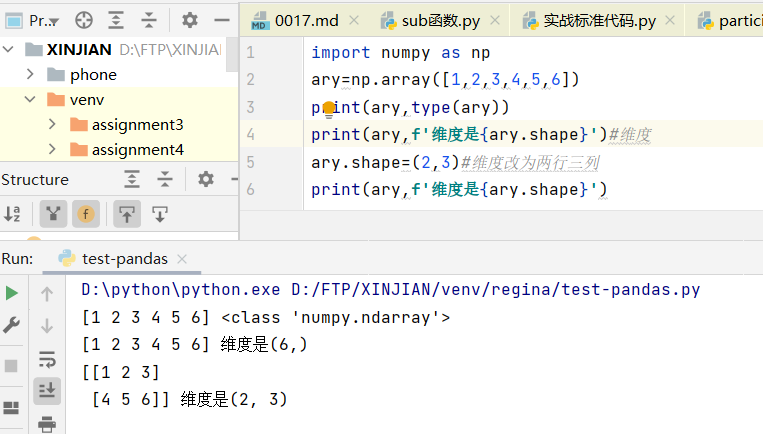 2.numpy里面用ndarray对象来保存多维数组,优点是:可以很方便的用shape来进行维度变换。想想如果是列表里要转换维度,得用好几个for循环