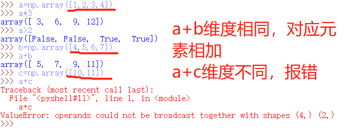 (2)数组和数组运算,那就把两个数组的对应元素进行运算,所以要求数组维度一致