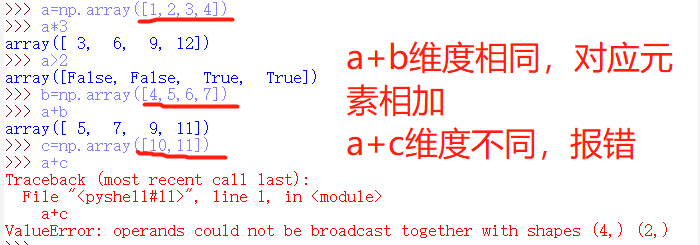 (1)数组和标量运算,那就把数组里的每一个元素都和标量进行运算