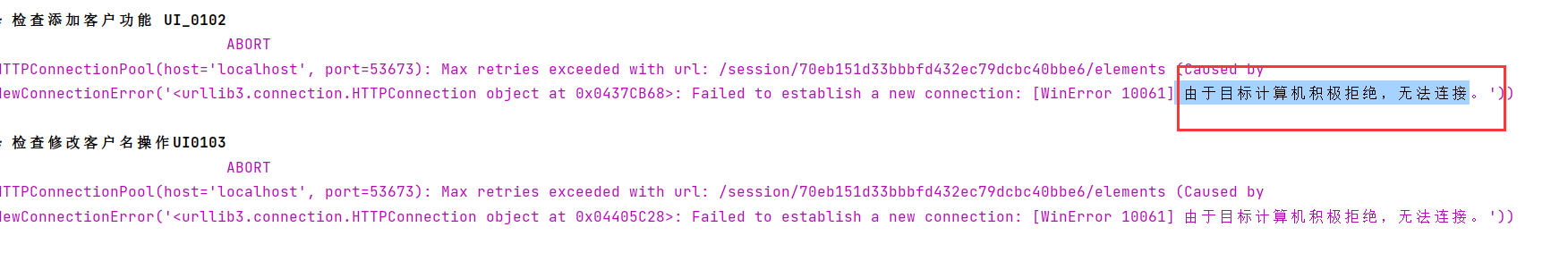 解决方案是:1.要么去掉每个用例的清除方法里的退出浏览器操作 2.或者给其他用例增加初始化方法,让他们可以重新打开浏览器
