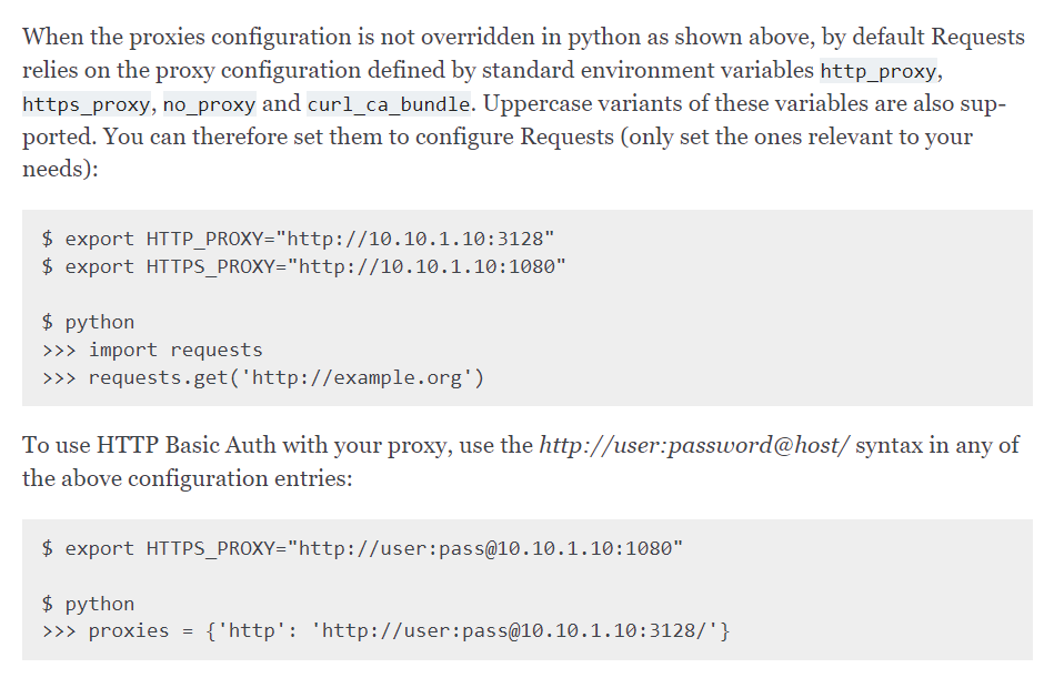 https://docs.python-requests.org/en/latest/user/advanced/#proxies(文档地址,有兴趣的可以自行去看看)
