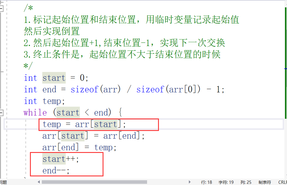 然后用一个temp作为临时元素来保存start元素的值,不然会被覆盖掉