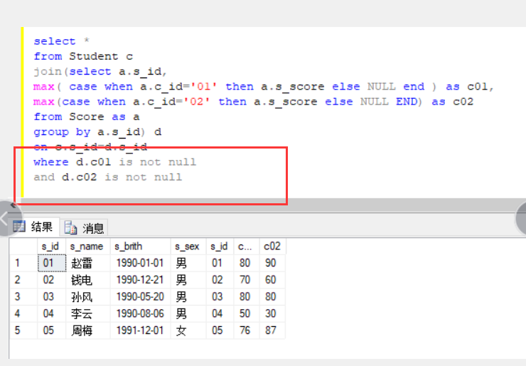 --9、查询学过编号为"01"并且也学过编号为"02"的课程的同学的信息
