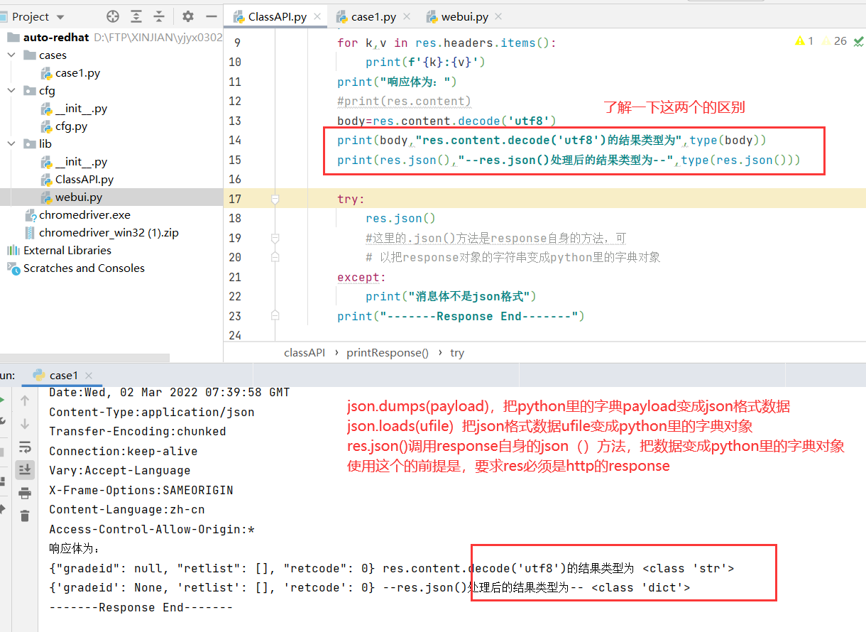 注意看 这里打印的res.content返回的结果是以b开头的,b开头说明这是一个字节串。 要转换成字符串需要进行解码 res.contetn.decode('utf-8')