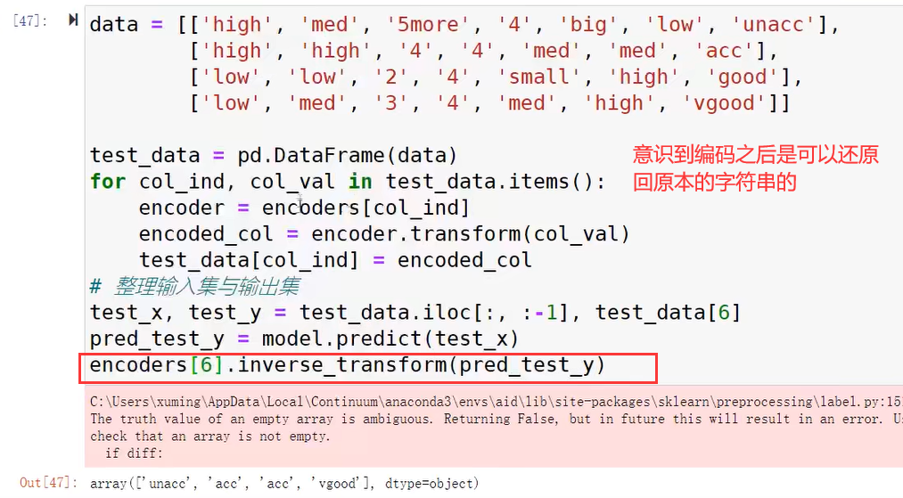 这里的重点是标签编码器要存起来,一定要训练和测试的时候,数据使用的是相同的标签编码器