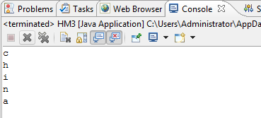 3.定义字符型数组,分别存储c、h、 i、n、a 并在控制台输出